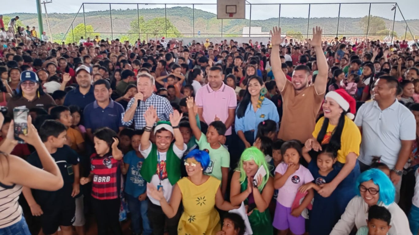 Mais de duas mil crianças receberam presentes de Natal na manhã desta sexta-feira (12), no município de Uiramutã, no Norte de Roraima. A entrega ocorreu na quadra poliesportiva municipal, na sede da cidade, como parte do programa Natal Presente, executado pela Secretaria do Trabalho e Bem-Estar Social (Setrabes).