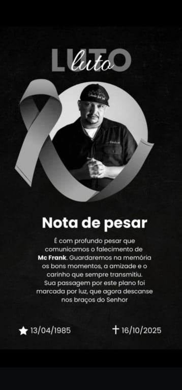 O rapper e agente cultural MC Frank faleceu na madrugada desta quinta-feira (16), após uma longa batalha contra o câncer. O artista, um dos principais nomes do hip-hop em Roraima, tinha 40 anos e deixa três filhas, esposa, amigos e uma legião de fãs.