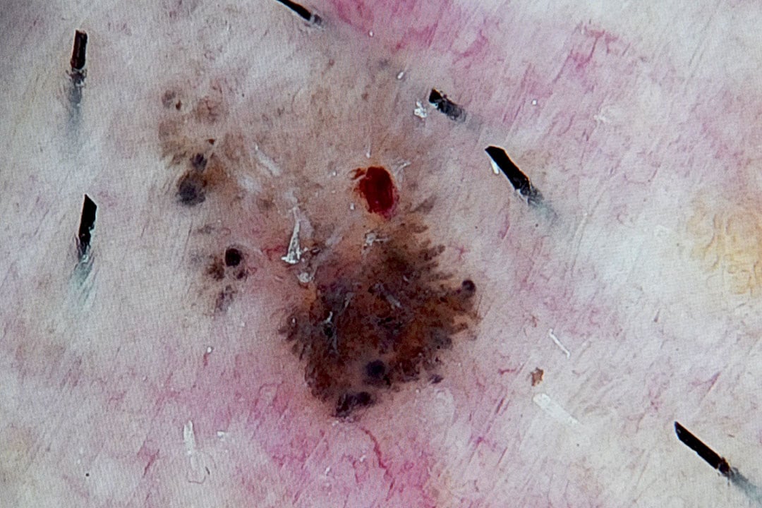 O câncer de pele pode se manifestar como lesões avermelhadas que formam crostas, feridas que não cicatrizam ou pequenos tumores rosados, além de outros sinais, como: