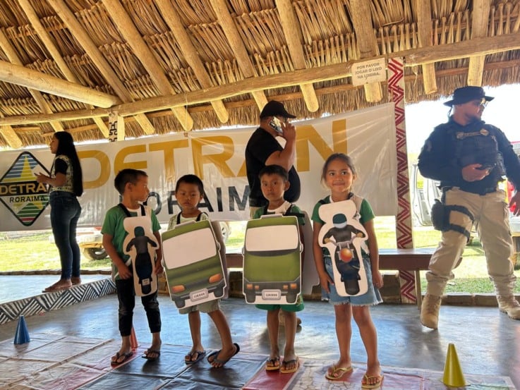 Entre as ações estão palestras, jogos educativos e exposições de viaturas em escolas municipais e estaduais, voltadas a diferentes faixas etárias. Na quinta-feira (30), os agentes do Detran ministraram atividades na Escola Municipal Indígena Mãe Eliza de Lima e na Escola Estadual Júlio Pereira, na comunidade indígena Uiramutã.