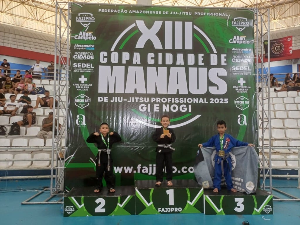 O atleta-mirim Tiago Luís, de apenas sete anos, conquistou duas medalhas de ouro durante o campeonato XIII Copa Cidade de Manaus Jiu-jitsu em Manaus, no Amazonas. A competição ocorreu na manhã deste domingo (7) e encerra o ano do prodígio do Jiu-Jitsu.