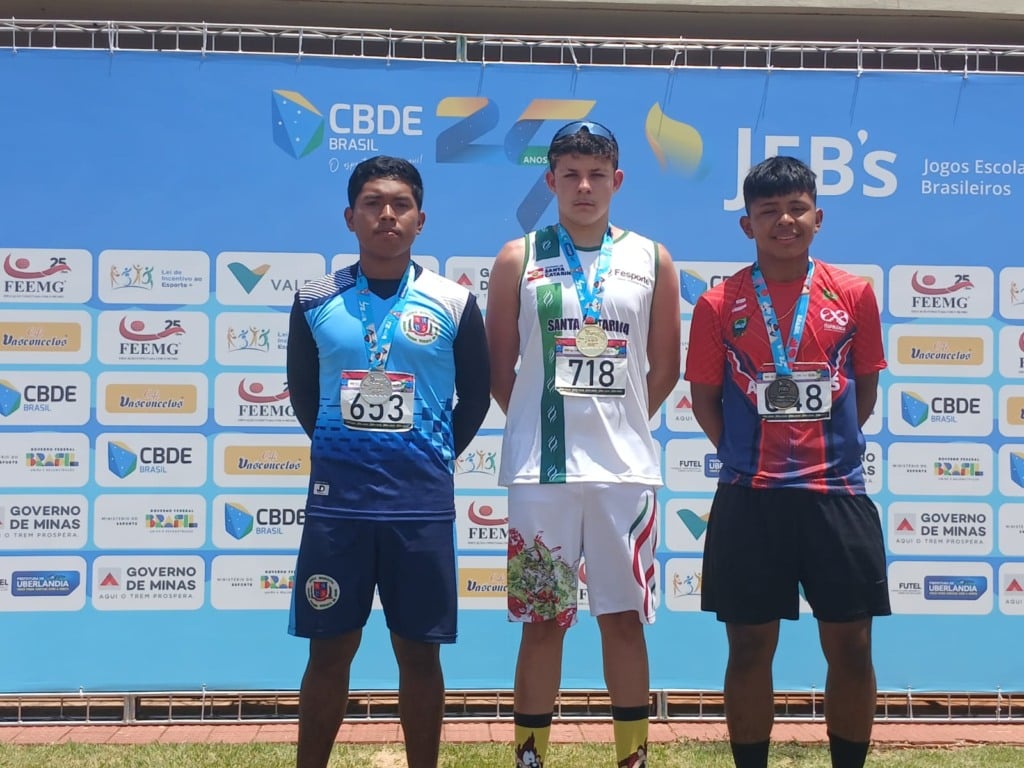 Três atletas roraimenses conquistaram medalhas no atletismo dos Jogos Escolares Brasileiros (JEBs),em provas disputadas na sexta-feira (17), no Clube Sesi, em Uberlândia, Minas Gerais. Clevison da Silva e Ítalo Gustavo ganharam duas pratas no arremesso de peso, enquanto Maria Elihana Rodrigues levou o bronze no lançamento de disco.