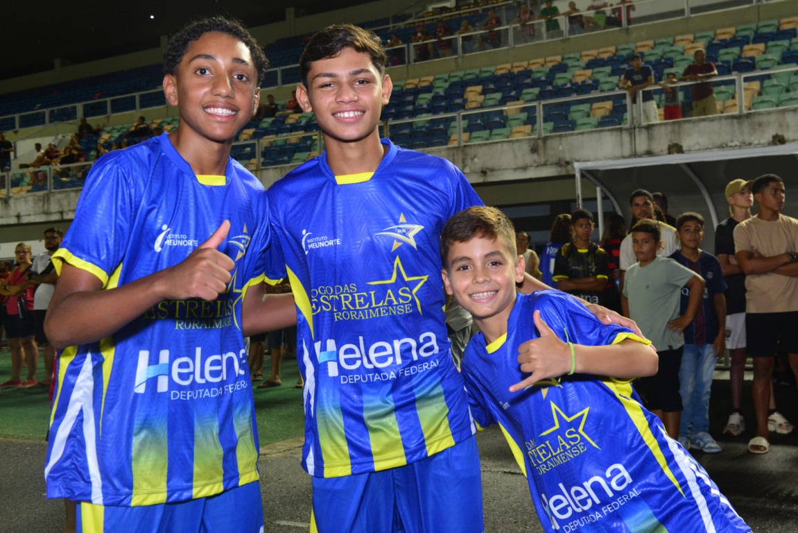 Em clima festivo e descontraído, atletas e jovens promessas do futebol roraimense que atuam em grandes clubes do país entraram em campo na noite deste sábado (27) para o Jogo das Estrelas, no estádio Canarinho.