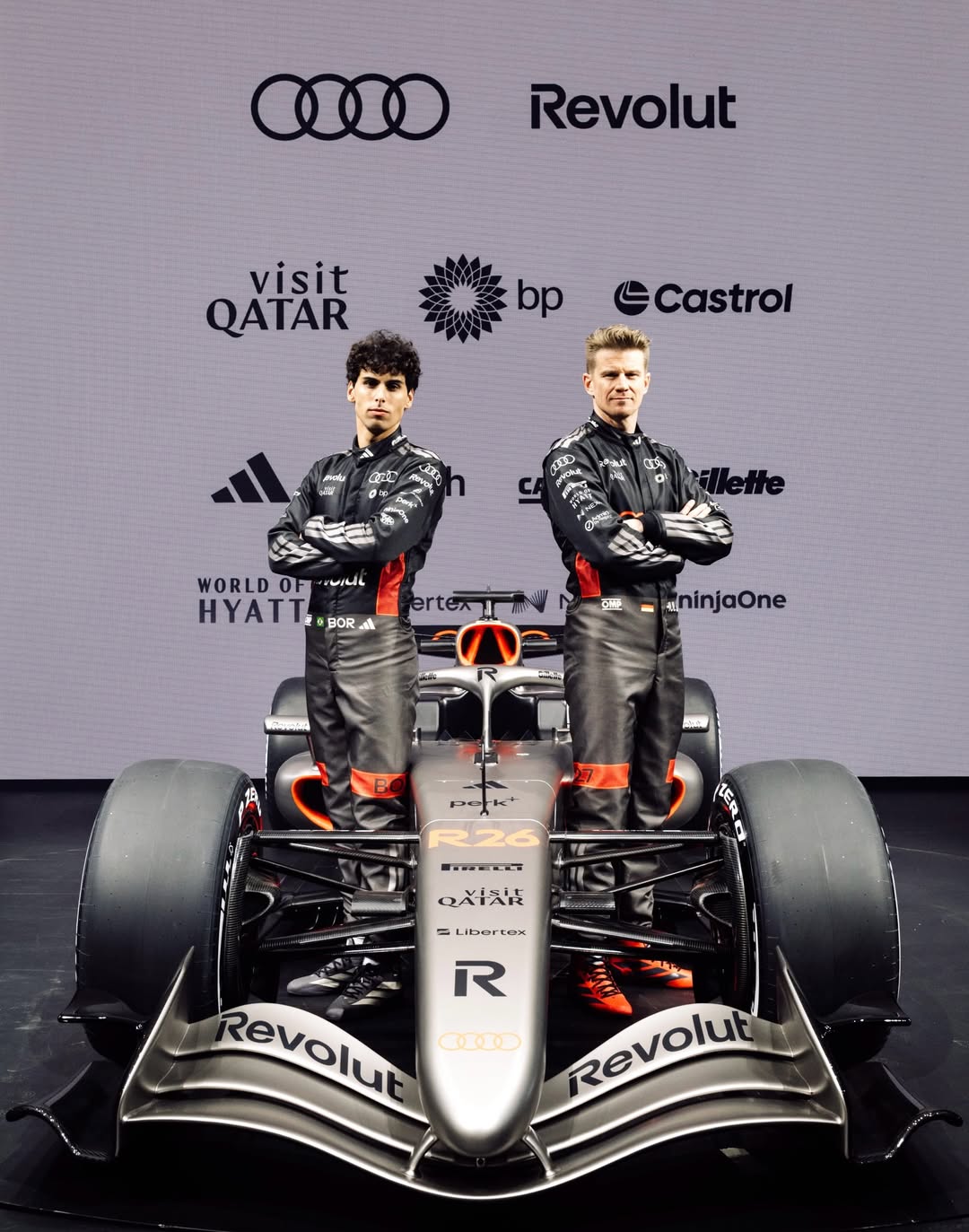 A Audi F1 apresentou nesta terça-feira (20), em Berlim, na Alemanha, a pintura do carro que marcará sua estreia oficial na Fórmula 1 em 2026. O modelo, batizado de R26, será pilotado pelo brasileiro Gabriel Bortoleto e pelo alemão Nico Hülkenberg na primeira temporada da montadora no grid da categoria.