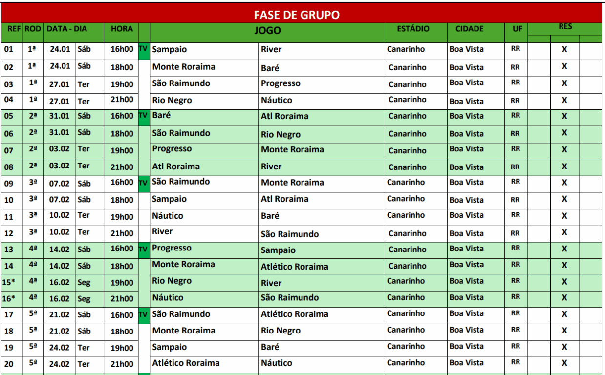 A Federação Roraimense de Futebol (FRF) divulgou a tabela detalhada do Campeonato Roraimense 2026. A competição será disputada entre os dias 24 de janeiro e 31 de março, com 39 partidas que vão definir o campeão estadual e os representantes de Roraima em competições nacionais.