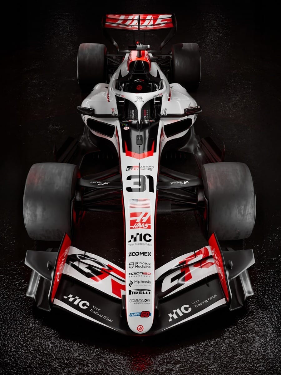 No design, a Haas optou por preservar sua identidade visual. O branco segue como cor predominante, agora ainda mais presente na carroceria, acompanhado por detalhes em vermelho e linhas pretas. O conjunto reforça a estética limpa e moderna do VF-26 para a temporada 2026.