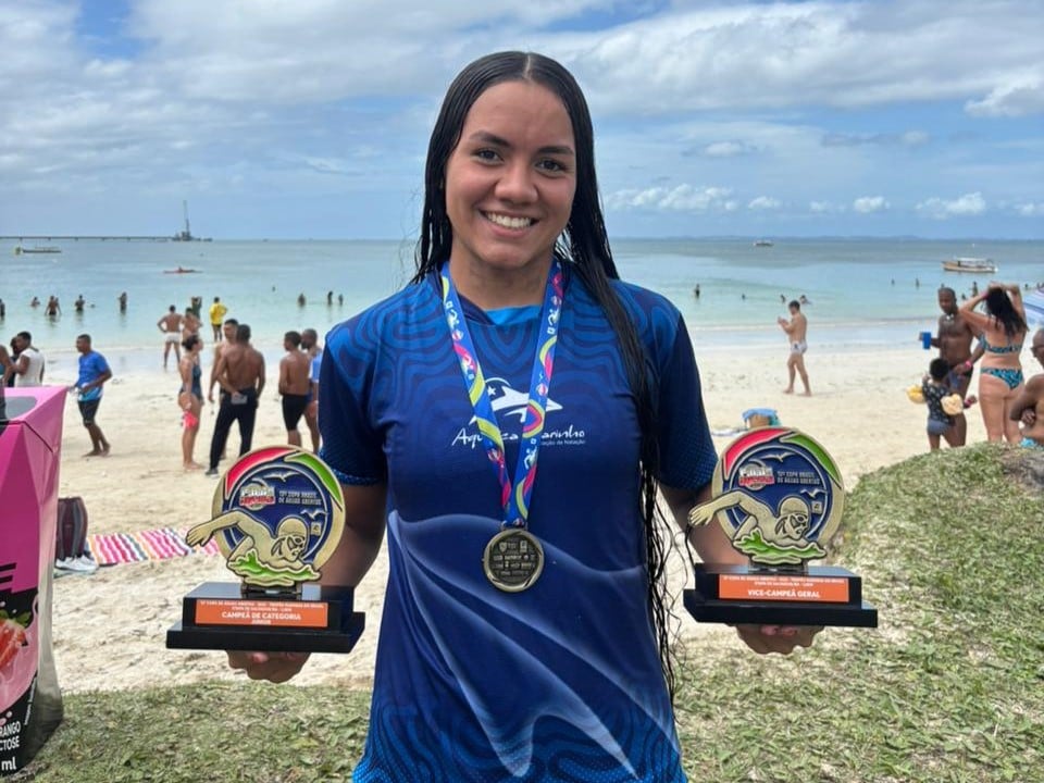 Os nadadores Kathleen Manoella e Pedro Marinho encerraram a temporada 2025 com resultados expressivos na 16ª etapa da Copa Brasil de Águas Abertas, disputada entre 21 e 23 de novembro, na Praia de Inema, em Salvador. Representantes da Aquática Marinho, os atletas são treinados pela professora Teca e fecharam o ano no pódio.