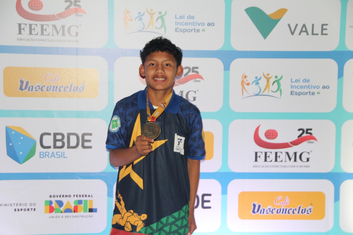 Pedro Henrique, 14, do Colégio Estadual Militarizado Wanda David Aguiar, faturou o bronze na Série Bronze (até 52 kg).