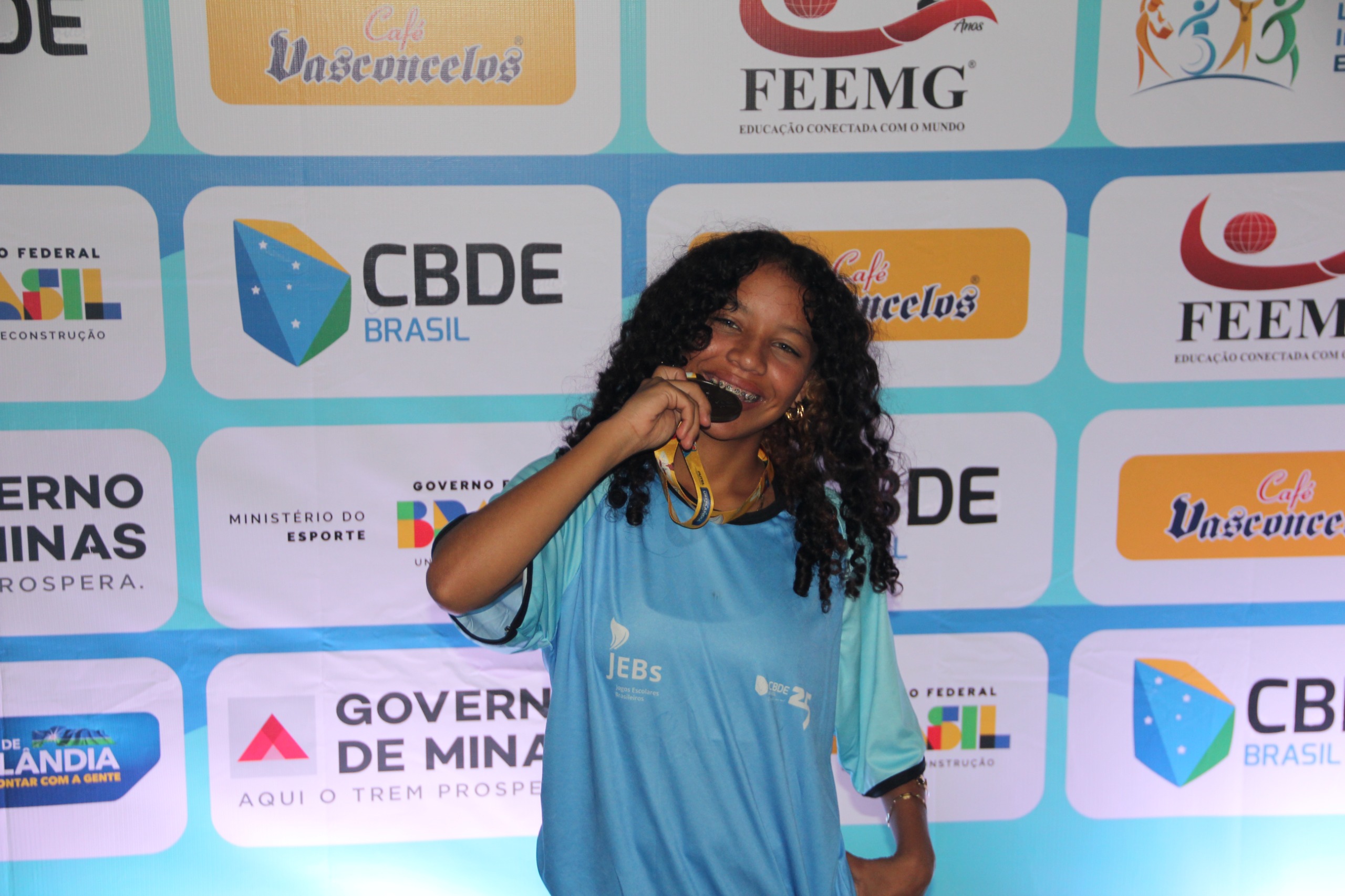 Charleines, 14, do Colégio Estadual Militarizado Wanda David Aguiar, faturou o bronze na Série Bronze (até 52kg).