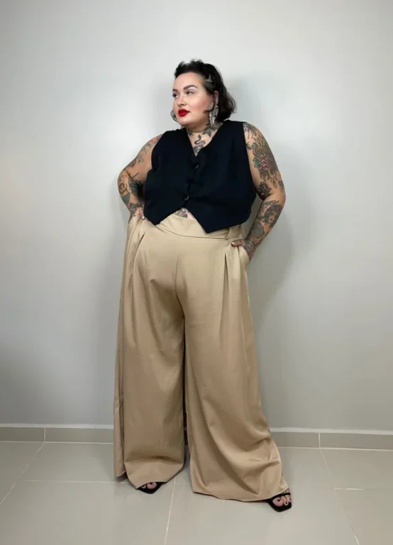 Prático e versátil, o macacão é uma escolha certeira para quem busca conforto sem abrir mão do estilo. Modelos de tecidos leves e cortes amplos funcionam bem em cores sólidas e garantem um visual atual, adequado tanto para celebrações informais quanto mais sofisticadas.