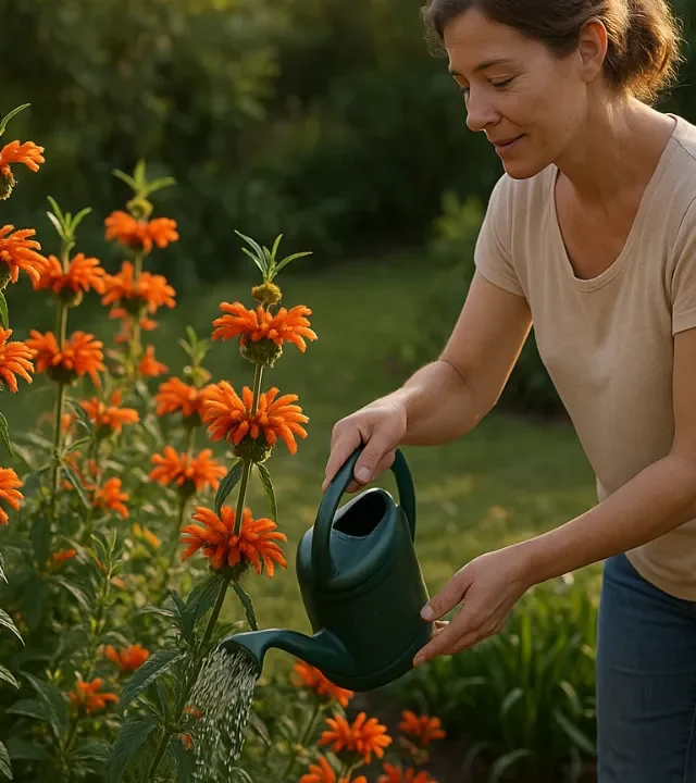 A orelha-de-leão (Leonotis leonurus) é uma planta originária da África do Sul, e isso explica parte de sua personalidade solar. Ela ama calor, sol direto e solo bem drenado. O maior erro dos iniciantes é achar que sombra parcial é suficiente — e não é. Essa espécie precisa de pelo menos seis horas diárias de sol para produzir flores intensamente coloridas. O ideal é cultivá-la em um local onde receba luz da manhã e um pouco da tarde, evitando apenas o sol escaldante das 14h às 16h.