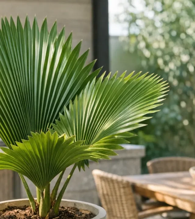 Mesmo em locais com alto uso e circulação, como varandas gourmet, a palmeira-leque pode se desenvolver bem se forem feitos pequenos ajustes. A seguir, veja cinco formas práticas de usar essa planta sem comprometer sua saúde: