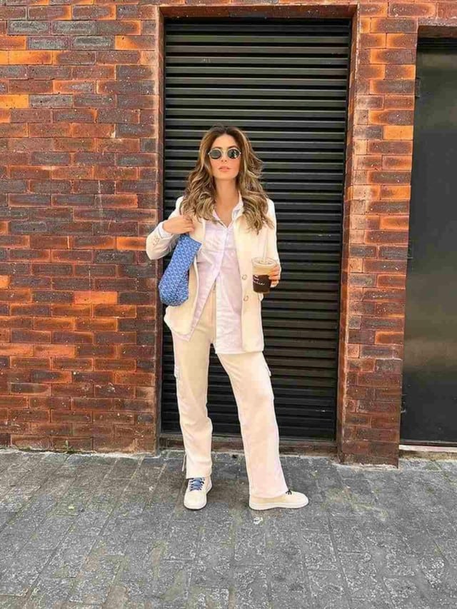 A escolha dos sapatos complementa o look com estilo e praticidade: