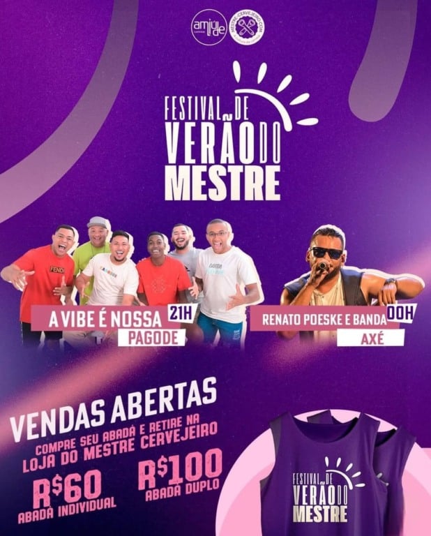 O Carnaval já está chegando e, para aquecer a maior festa do país, o Mestre Cervejeiro realiza o Festival de Verão. A festa acontece no sábado (31), às 21h, com shows de A vibe e Renato Poeske. Os ingressos são vendidos no formato de abadá, com venda e retirada diretamente na loja MC. 🥁🎶🍺