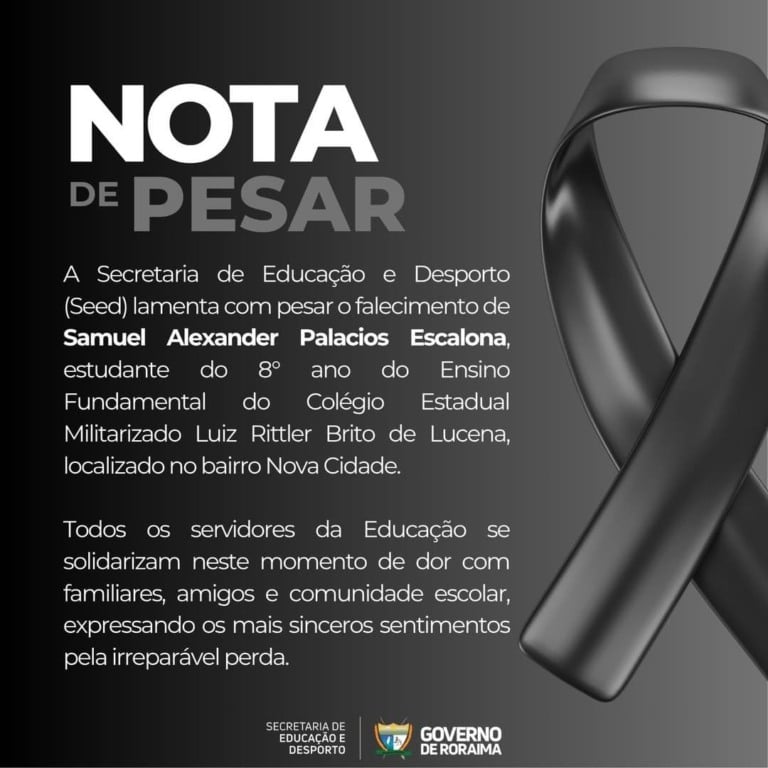 O jovem era estudante do Colégio Estadual Militarizado Luiz Hittler Brito de Lucena, no bairro Nova Cidade. A Secretaria de Educação e Desporto (Seed) emitiu uma nota de pesar.