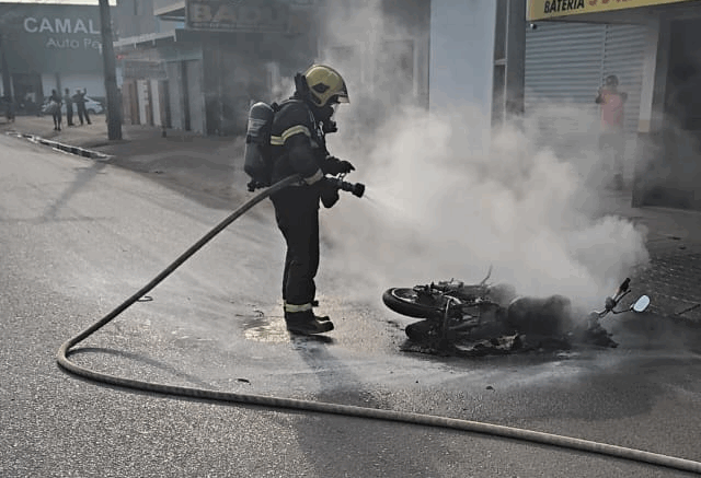 Na manhã desta quinta-feira (16), por volta das 7h30, uma motocicleta pegou fogo na avenida Ataíde Teive, no bairro Cambará, em frente à um posto de combustíveis. De acordo com o Corpo de Bombeiros Militar de Roraima (CBM-RR), testemunhas afirmaram que o incêndio ocorreu após a motocicleta colidir contra um cachorro.