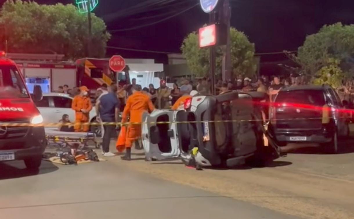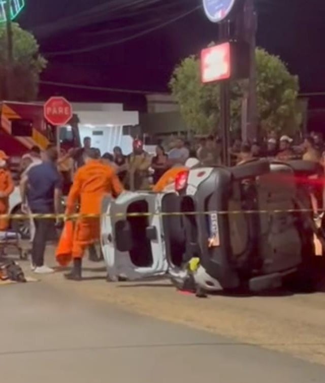 De acordo com informações da Polícia Militar, a colisão ocorreu quando um Kwid atravessou o cruzamento e foi atingido na lateral por um Corolla, que trafegava pela Avenida Ville Roy. Com o impacto, o Kwid capotou na via.
