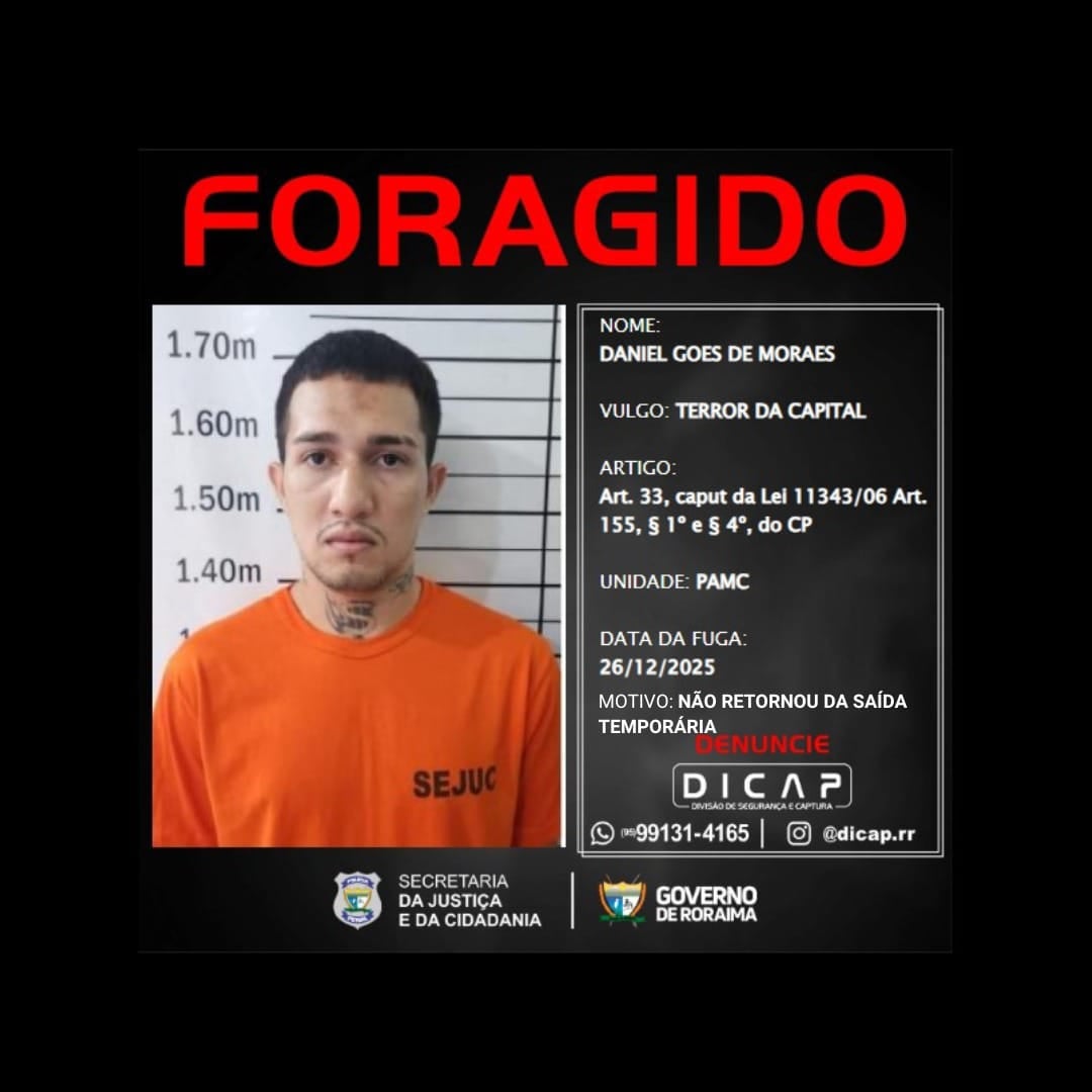 A Divisão de Inteligência e Captura (Dicap) divulgou a lista de doze detentos que não retornaram às unidades prisionais após a saidinha de Natal. No último dia 20, 669 detentos receberam autorização judicial para deixar as unidades prisionais, que deveriam retornar no dia 26, última sexta-feira.