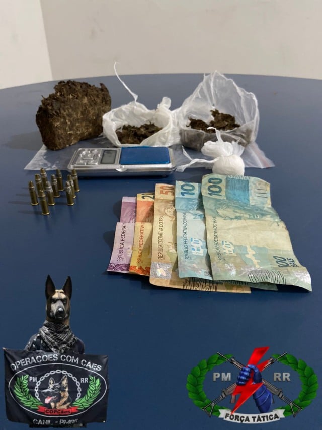 A Força Tática da Polícia Militar de Roraima apreendeu porções de skank e uma balança de precisão durante abordagem no bairro Jardim Caranã, após dois jovens identificados como A.D.M., de 21 anos e WM.S.R., de 25 anos serem flagrados em atitude suspeita.