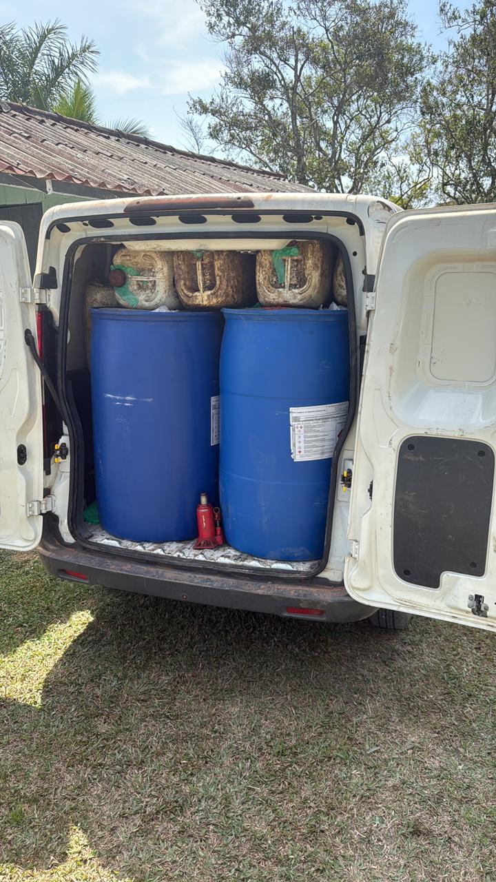 Na vistoria, os agentes encontraram 221 carotes e seis tonéis de diesel, além de um utilitário com carroceria adaptada de forma irregular para o transporte do combustível.