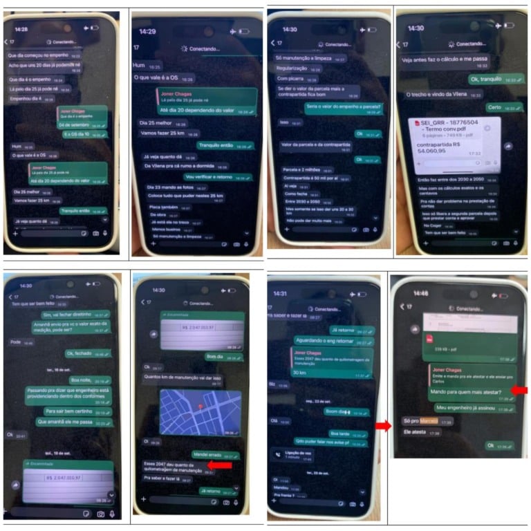 Ainda de acordo com a PF, no dia 15 de setembro, em conversa com a proprietária da Prosolo, Joner Chagas começou a tratar possível fraude na execução do contrato, ao orientar o ajuste do valor da medição dos quilômetros de estrada a serem objeto da manutenção. Chagas chegou a indicar um engenheiro do Município para atestar a execução simulada.