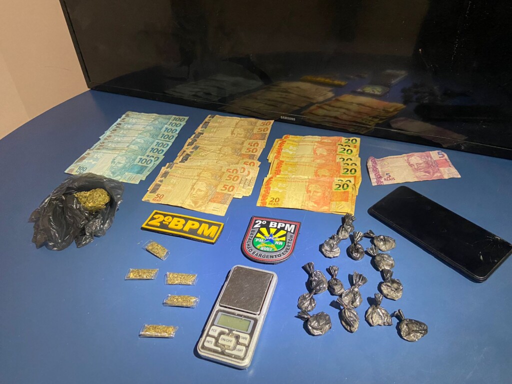 Os policiais foram até a residência do infrator, onde foram encontrados 19 invólucros, sendo cinco de Skank e 14 de pasta base de cocaína, uma balança de precisão e R$ 1805 em notas trocadas. Além de, uma televisão 50 polegadas possivelmente produto de furto.