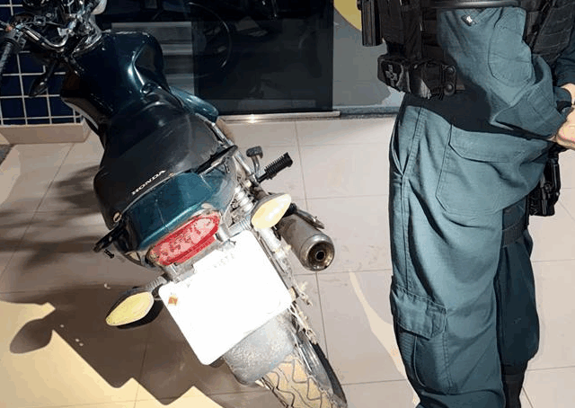 Após consulta sobre o estado do veículo, verificou-se que a motocicleta possuía restrição de roubo/furto. A motocicletafoi apresentada na delegacia e o caso foi encaminhado para as medidas cabíveis.