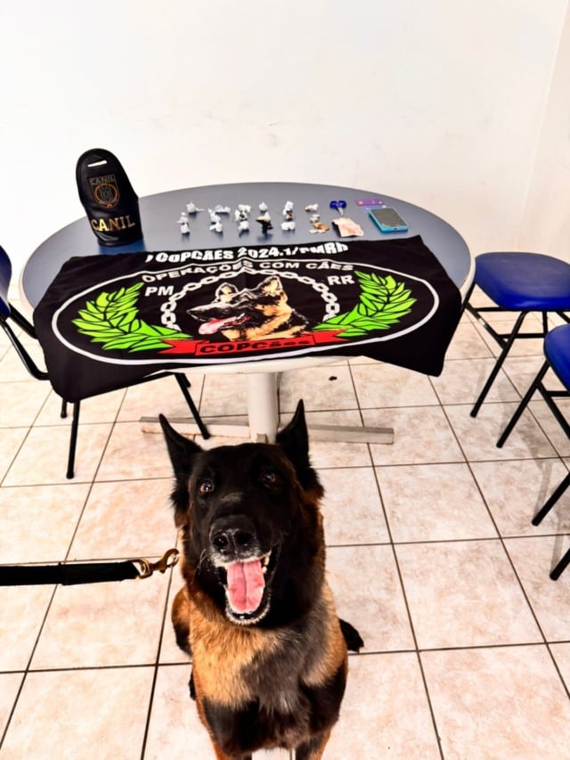 Na sequência, a cadela farejadora Vicky foi empregada no local e indicou positivamente para a presença de entorpecentes em uma área próxima. No ponto indicado, os policiais localizaram mais 13 invólucros de substância análoga à maconha do tipo skank.