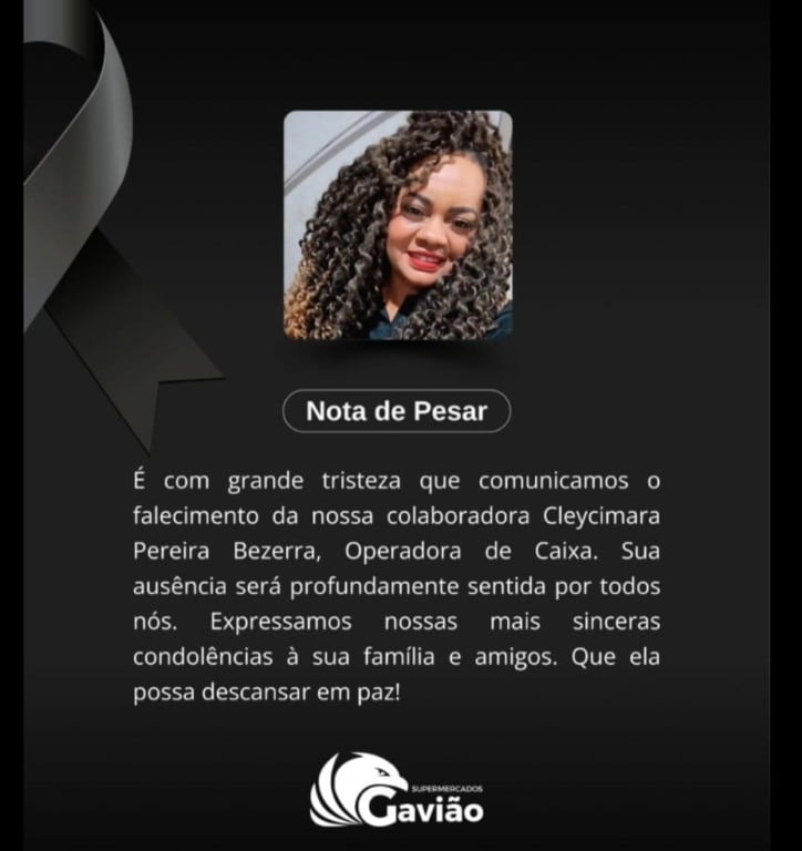 O supermercado onde Cleicymara trabalhava emitiu uma nota de pesar pelo falecimento da funcionária.