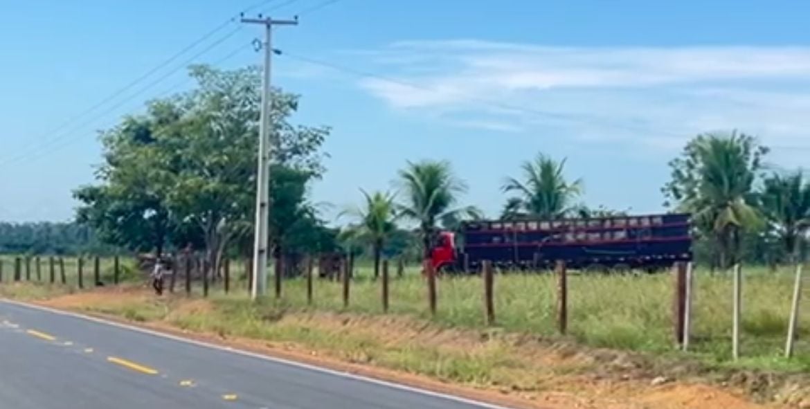 A filha do casal conseguiu sair da propriedade e pedir ajuda a vizinhos, que acionaram a Polícia Militar. O grupo foi abordado no km 15 da Vicinal 12. Com os suspeitos, a PM encontrou o simulacro, um colete balístico, celulares, um notebook e R$ 7.100 em espécie. Os caminhões com os animais foram apreendidos logo depois. Na delegacia, K.G.A.D. já estava detida como “suposta autora/infratora”.
