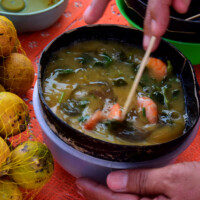 A acreana criada no Amazonas explica que o Tacacá é uma comida feita a partir da manipueira, ou o famoso tucupi, da mandioca, acrescido de goma, jambu e camarão seco. O caldo quente, além de renovar as energias, também tem histórico afrodisíaco e curador de ressaca.