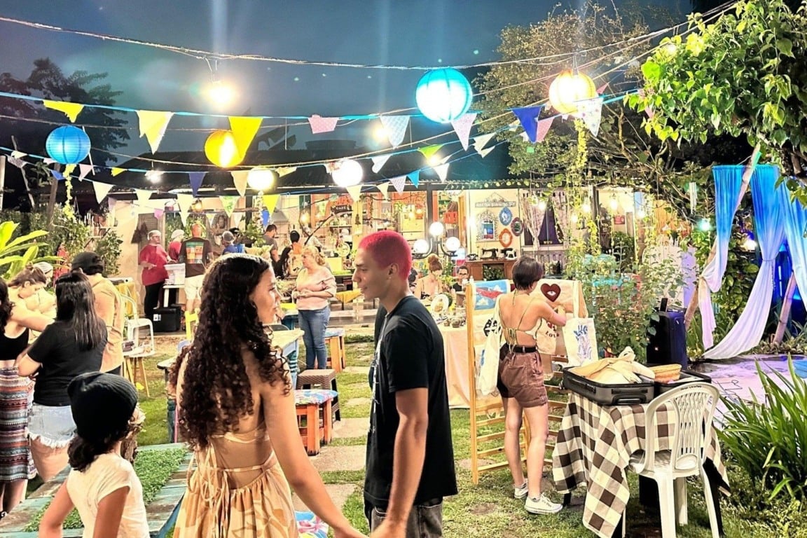 A escolha do endereço é fruto de uma parceria com o casal Sheilla Cabral e Demilton Cabral. A residência, batizada pelos próprios proprietários como “Lá no Meu Quintal”, possui uma atmosfera leve que, somada à decoração cuidadosa de Sheilla, se transforma no cenário ideal para a feira.