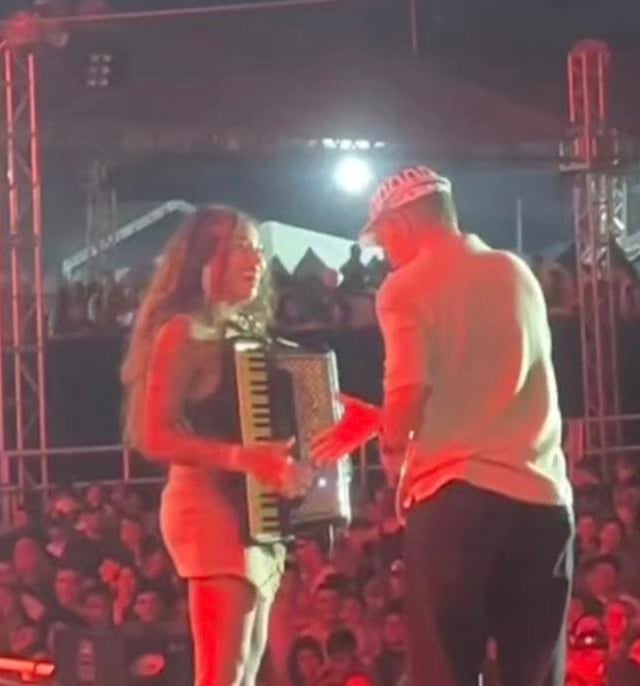 “Ó, ela, lá no camarim, disse que queria conhecer o empresário, então…”, brincou João Gomes antes de apertar a mão da jovem, diante do público, sinalizando a parceria.