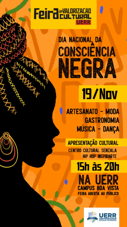 A Universidade Estadual de Roraima (UERR) realiza hoje (19) a Feira de Valorização Cultural. O evento em celebração ao Mês da Consciência Negra acontece das 15h às 20h. O Campus Boa Vista da UERR, no bairro Canarinho, é o palco das atividades, que visam promover a igualdade racial, reconhecer a diversidade étnica e fortalecer a cultura e a economia criativa roraimense.