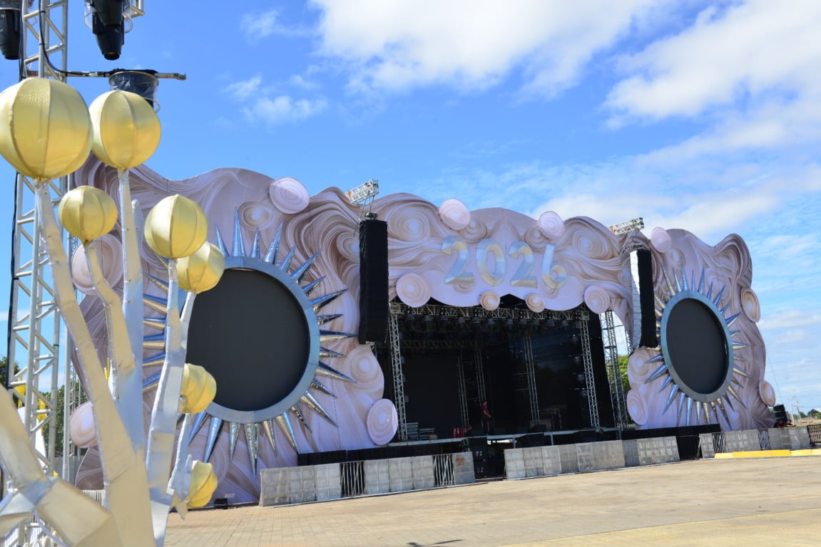 A festa começa a partir das 19h30, com shows de artistas locais, entre eles Banda Dubai, Estêvão Alves e Matheusinho. Às 23h, o público acompanha a apresentação de Leonardo, apontada como o momento mais aguardado da noite. Para marcar a virada do ano, haverá uma queima de fogos com duração aproximada de 11 minutos. Após o espetáculo pirotécnico, a programação segue com os shows de Xote Miudinho e Reinaldo Barroso.